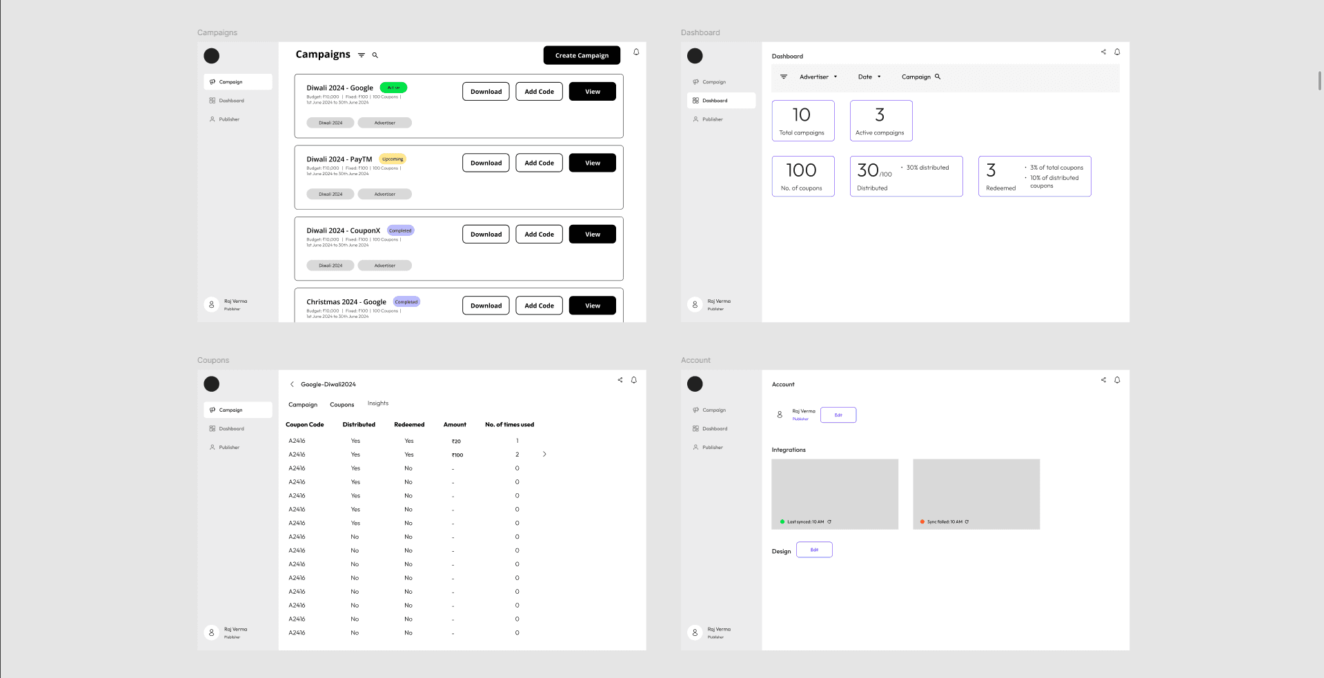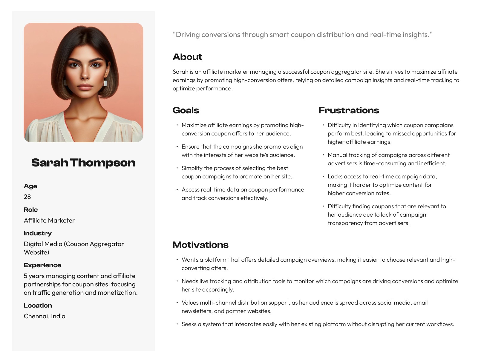 Our primary users are Advertisers who will create campaign, coupons and assign it to an publisher and Publishers who will be able to access that assigned campaigns by advertisers.