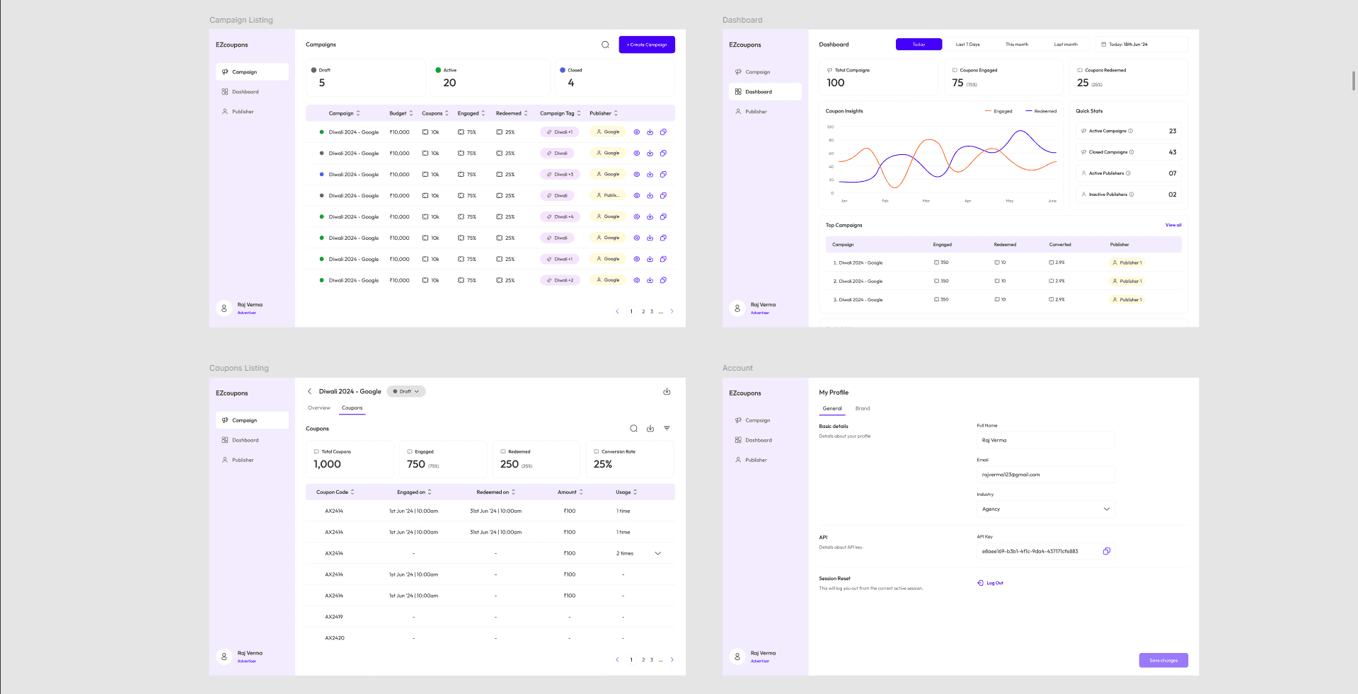 EzCoupon is an B2B SaaS product which provides accessibility for both advertisers and publishers to create, manage their campaigns and coupons.